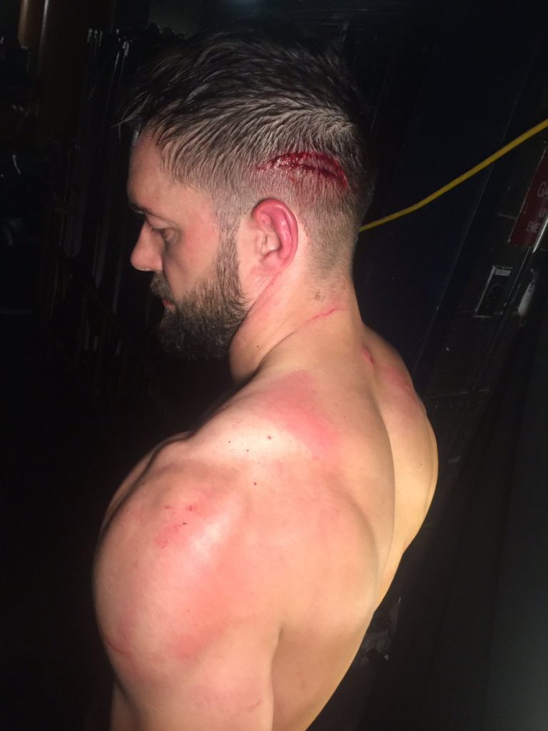 Graphic Photo of Finn Balor’s Head After the Guitar Smash on RAW